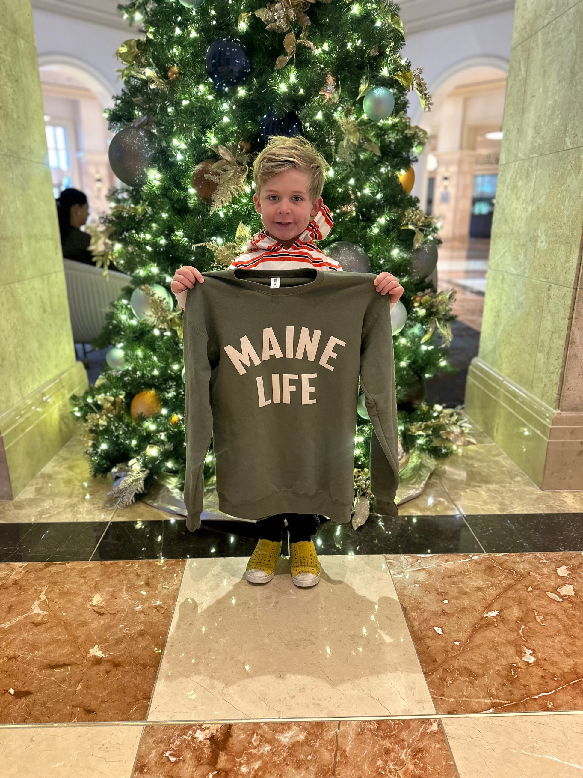 The best part? The bold felt “MAINE LIFE” lettering across the chest adds a classic, nostalgic touch that stands out in all the right ways. Whether you love Maine, love the outdoors, or just want a timeless crewneck you can wear anywhere, this sweatshirt is made to be your new favorite. Erin is wearing an XS!